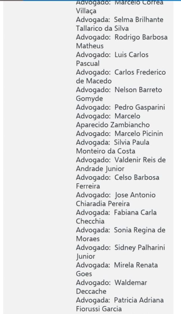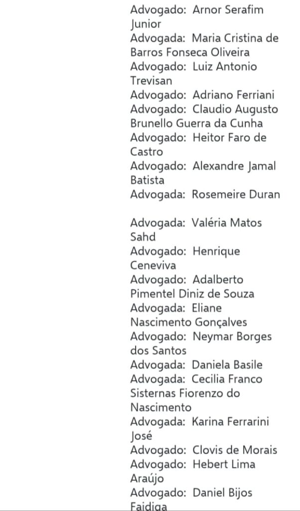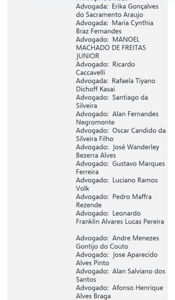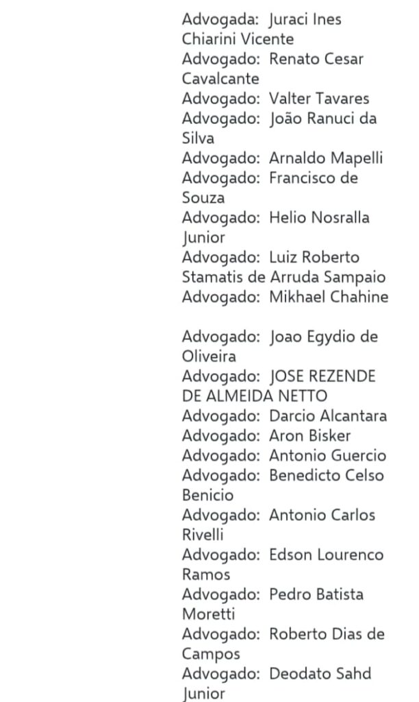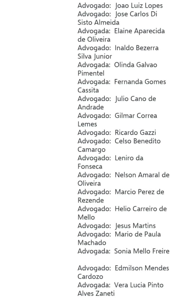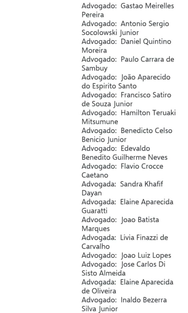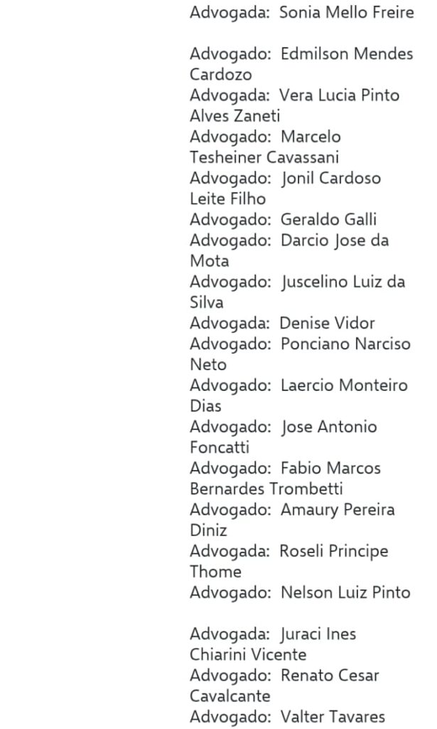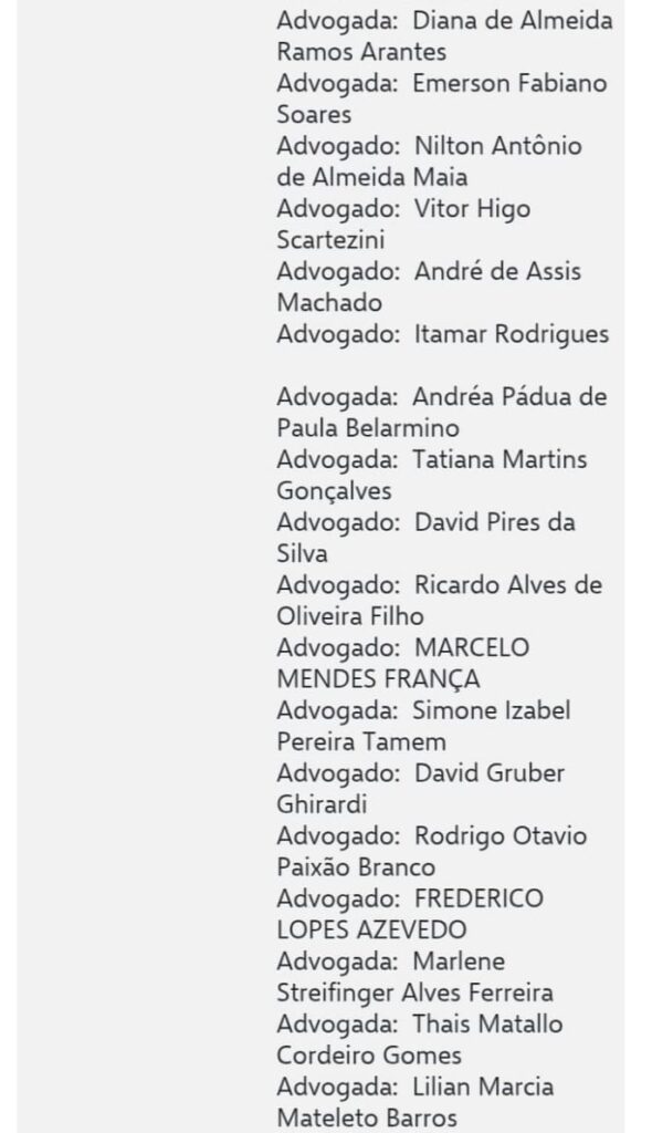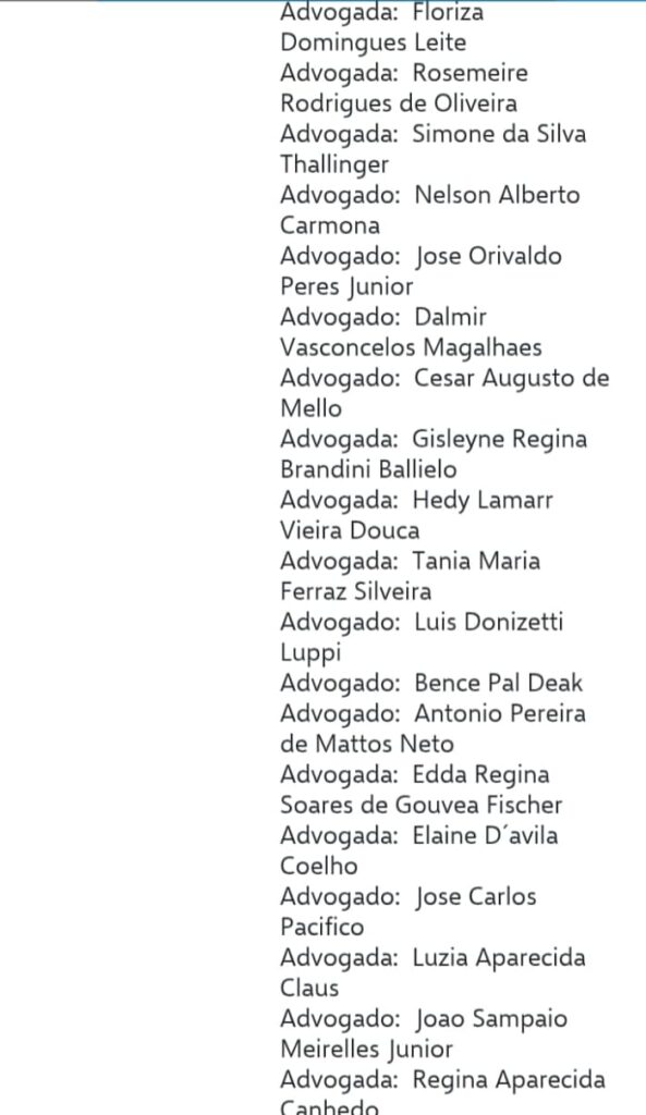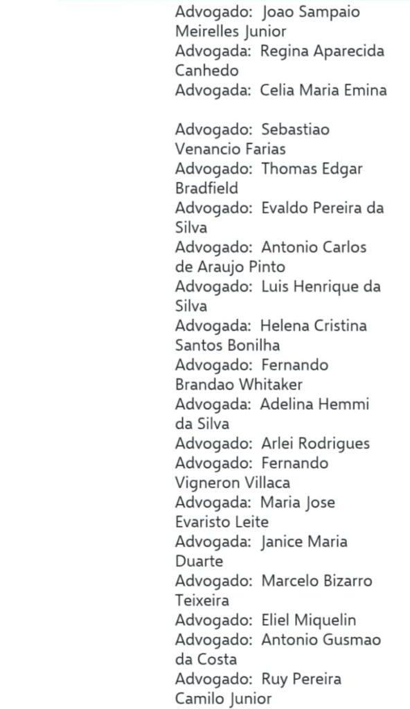 segue a lista dos advogados nas imagens abaixo ;