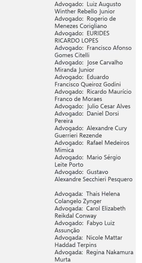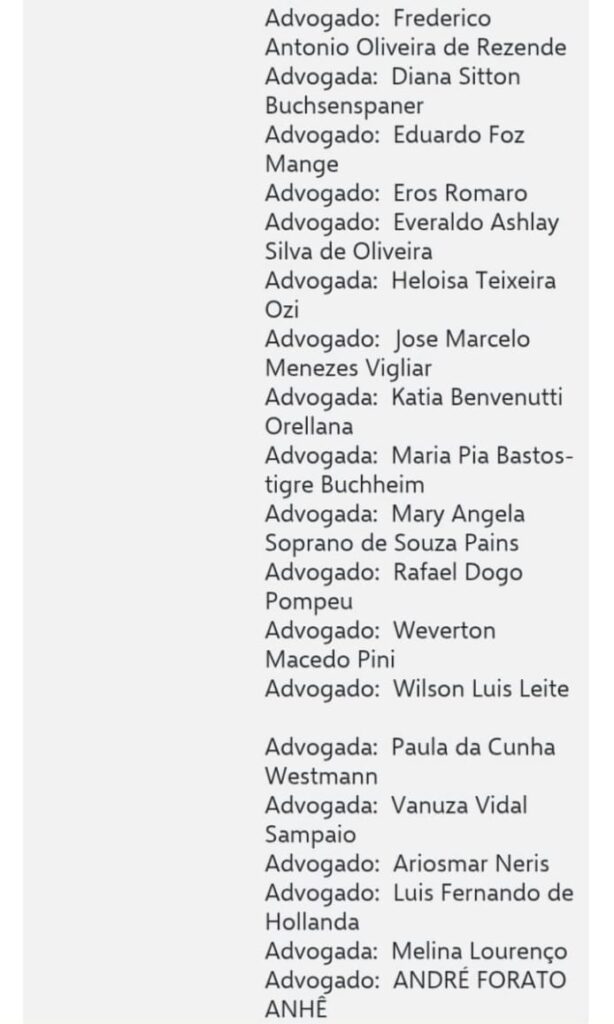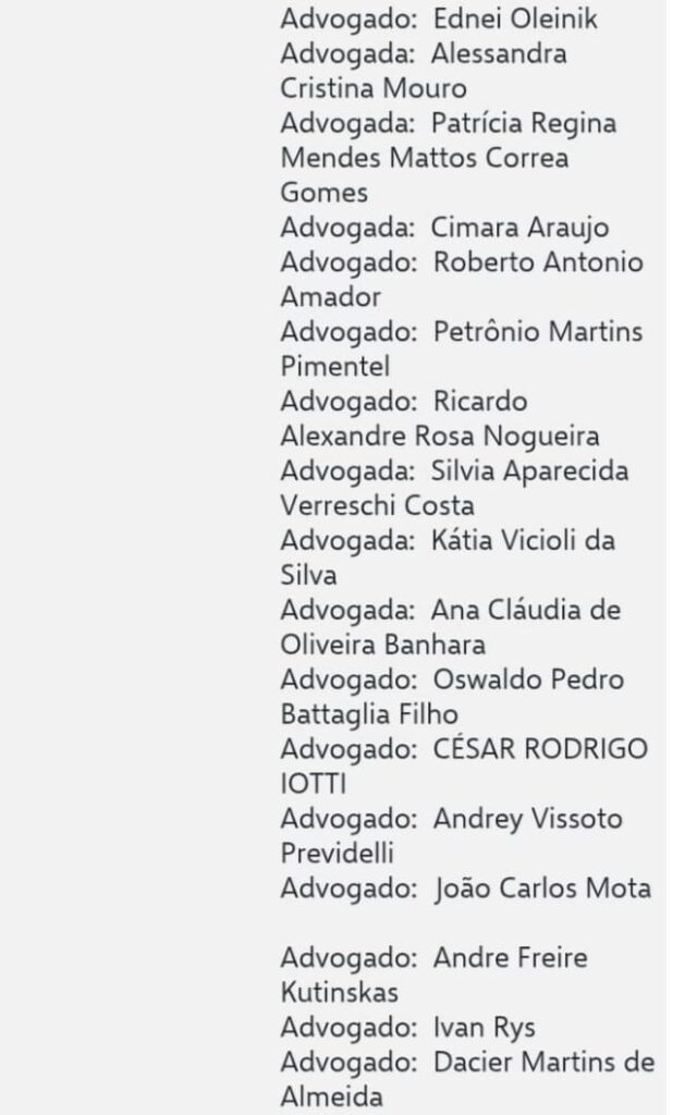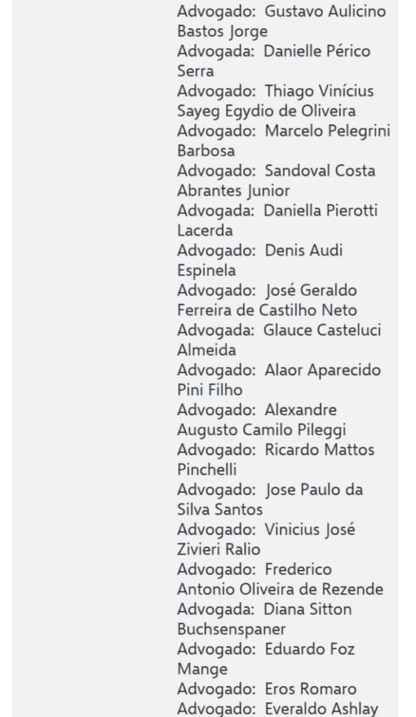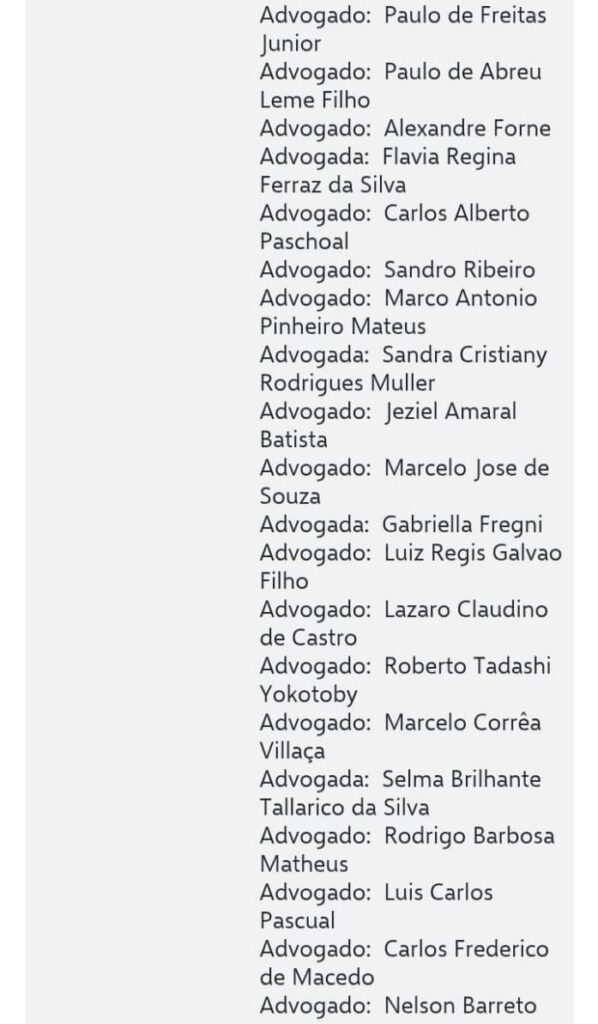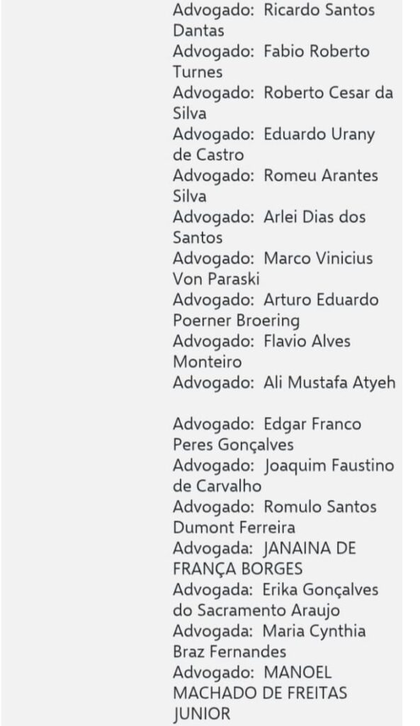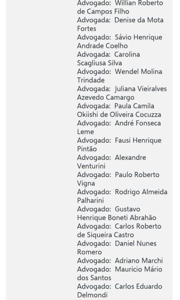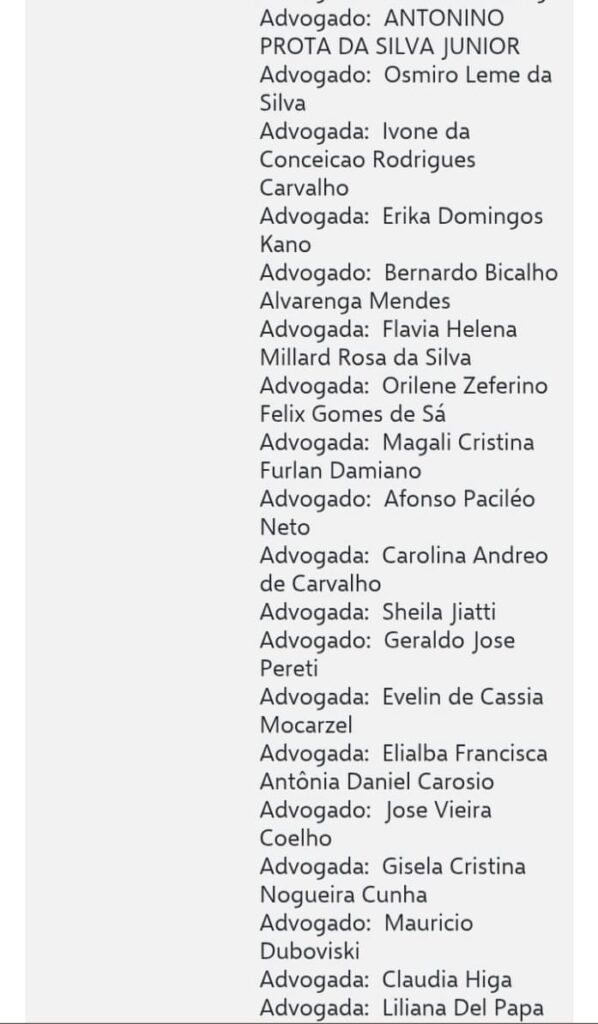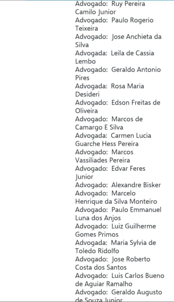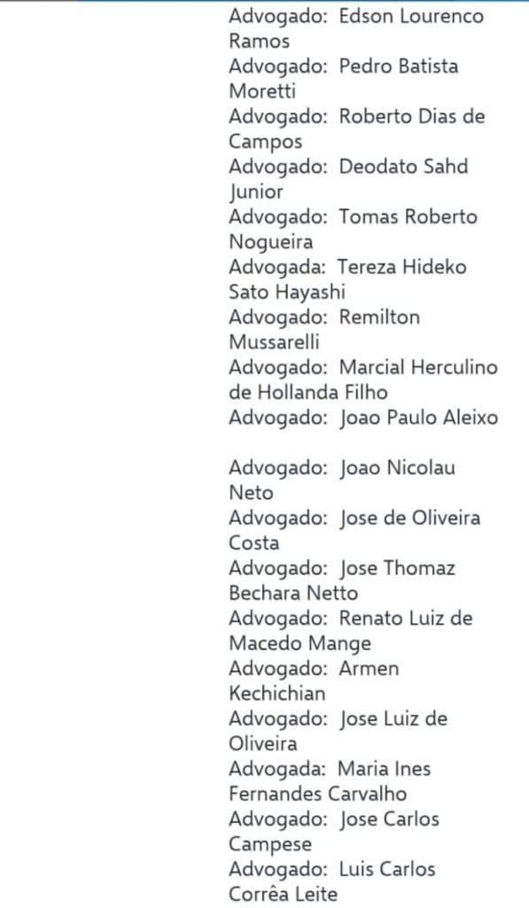 segue a lista dos advogados nas imagens abaixo ;